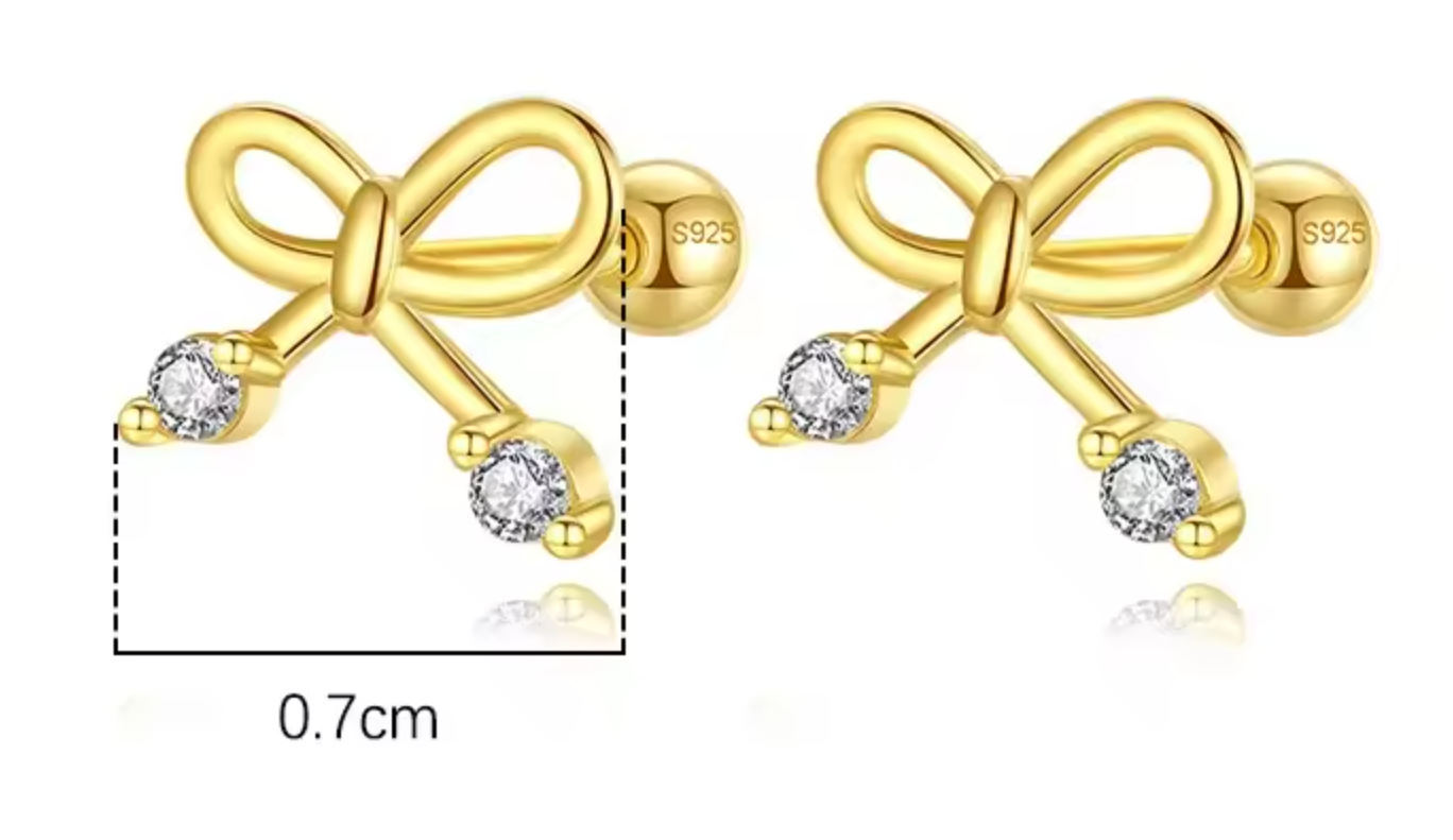 18k Gold Plated Sterling Silver Earrings Bowknot Screw-Back Stud Earrings – Fine Jewelry for Weddings and Special Occasions