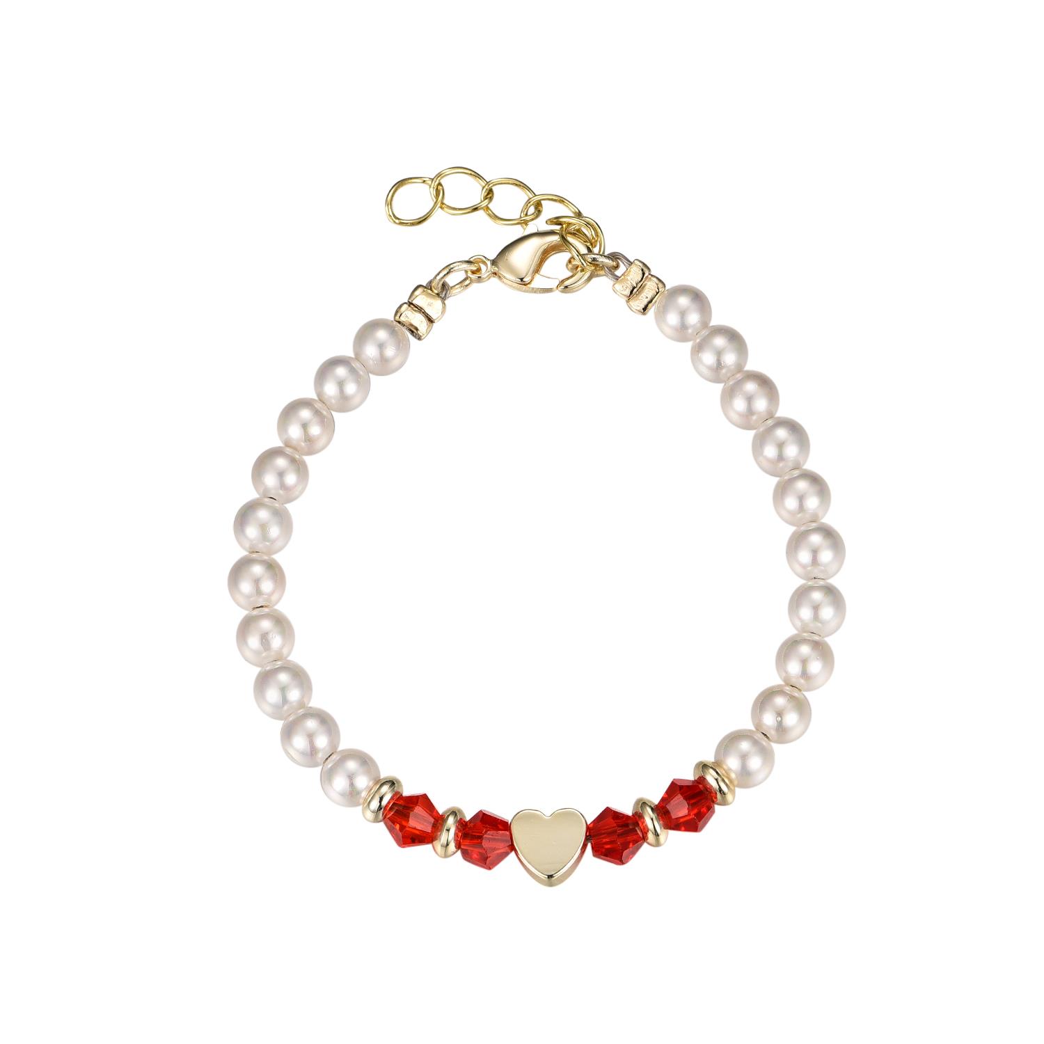 Baby Bracelet Gold Plated with White Shell Pearls and Gold Plated Heart