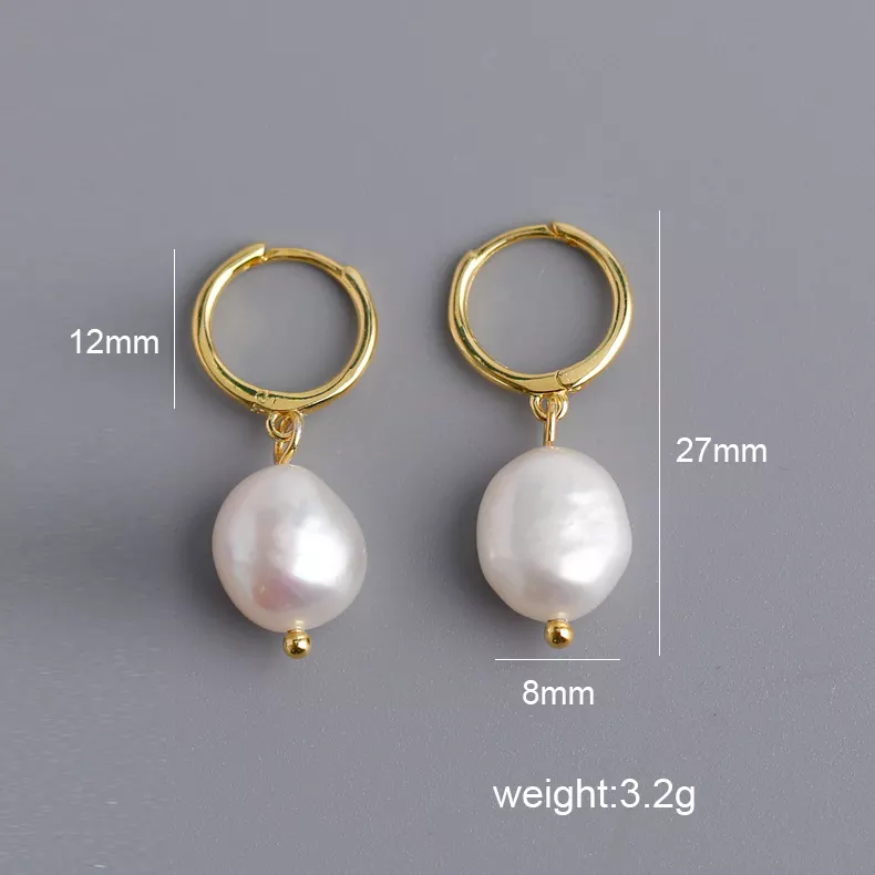Sterling Silver 18k Gold Plated Huggie Hoops Earrings Baroque Natural Freshwater Pearl Earrings