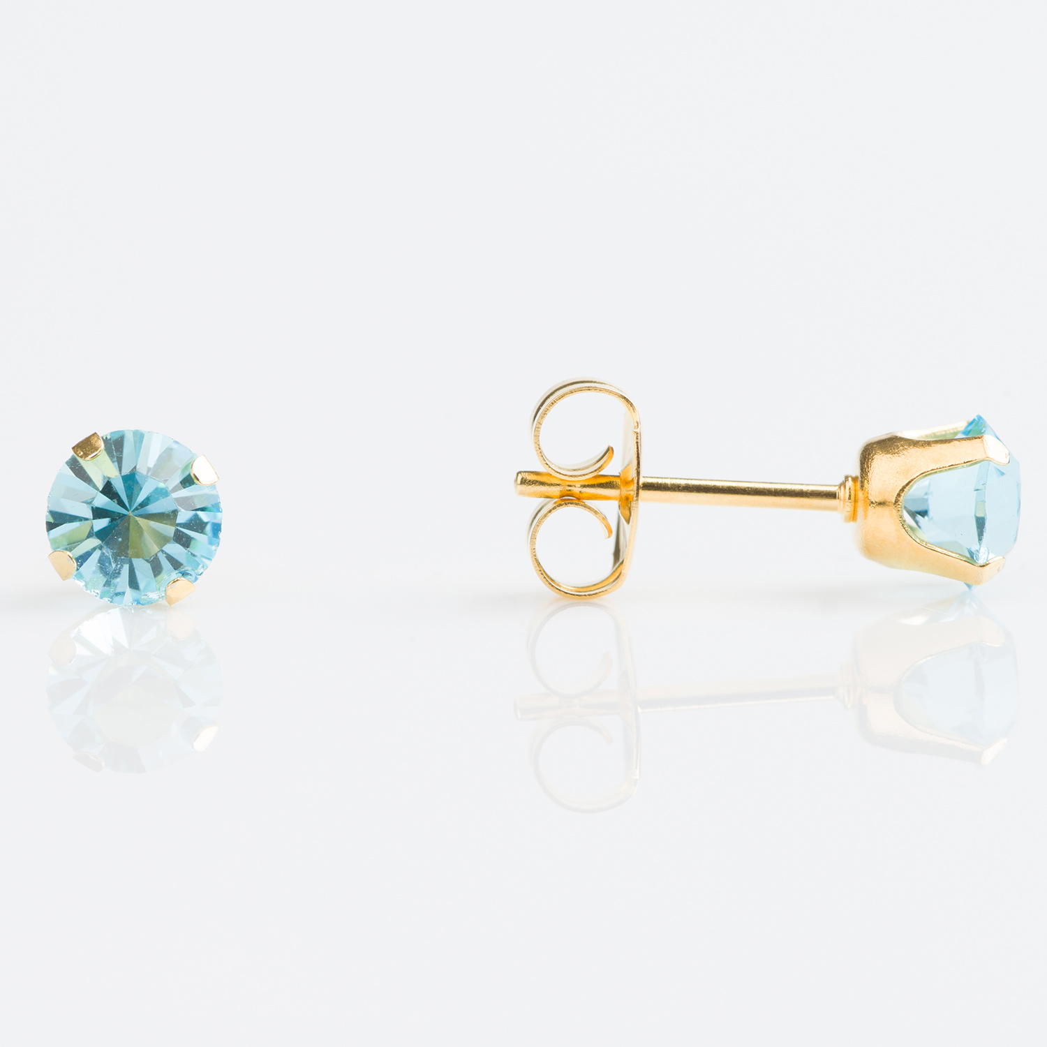 Beautiful pair of Studex Sensitive Gold Plated TIFF. 5mm March Aquamarine Earrings are great for sensitive ears.