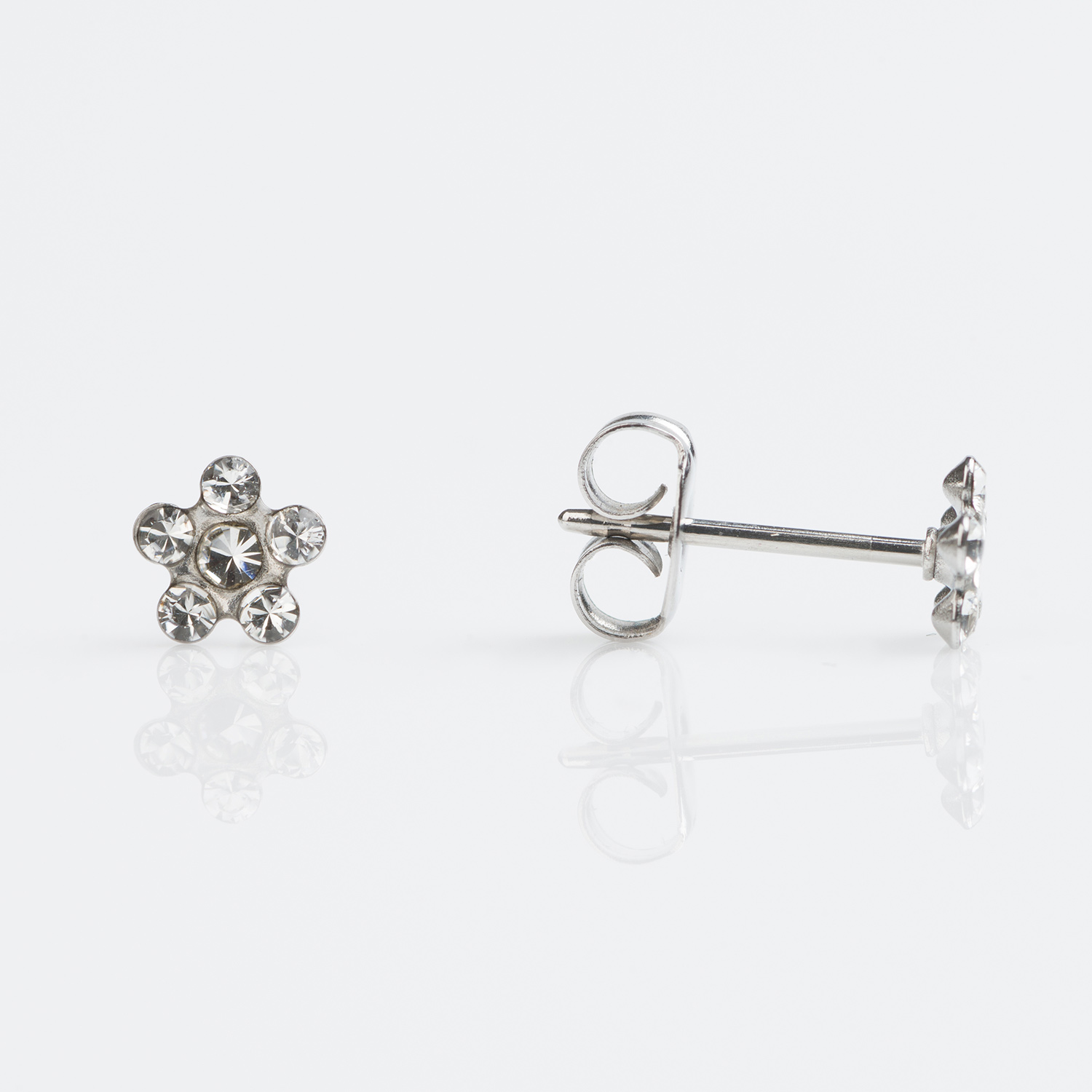 Beautiful pair of Studex Sensitive Stainless Steel Daisy AB Crystal Earrings are great for sensitive ears.