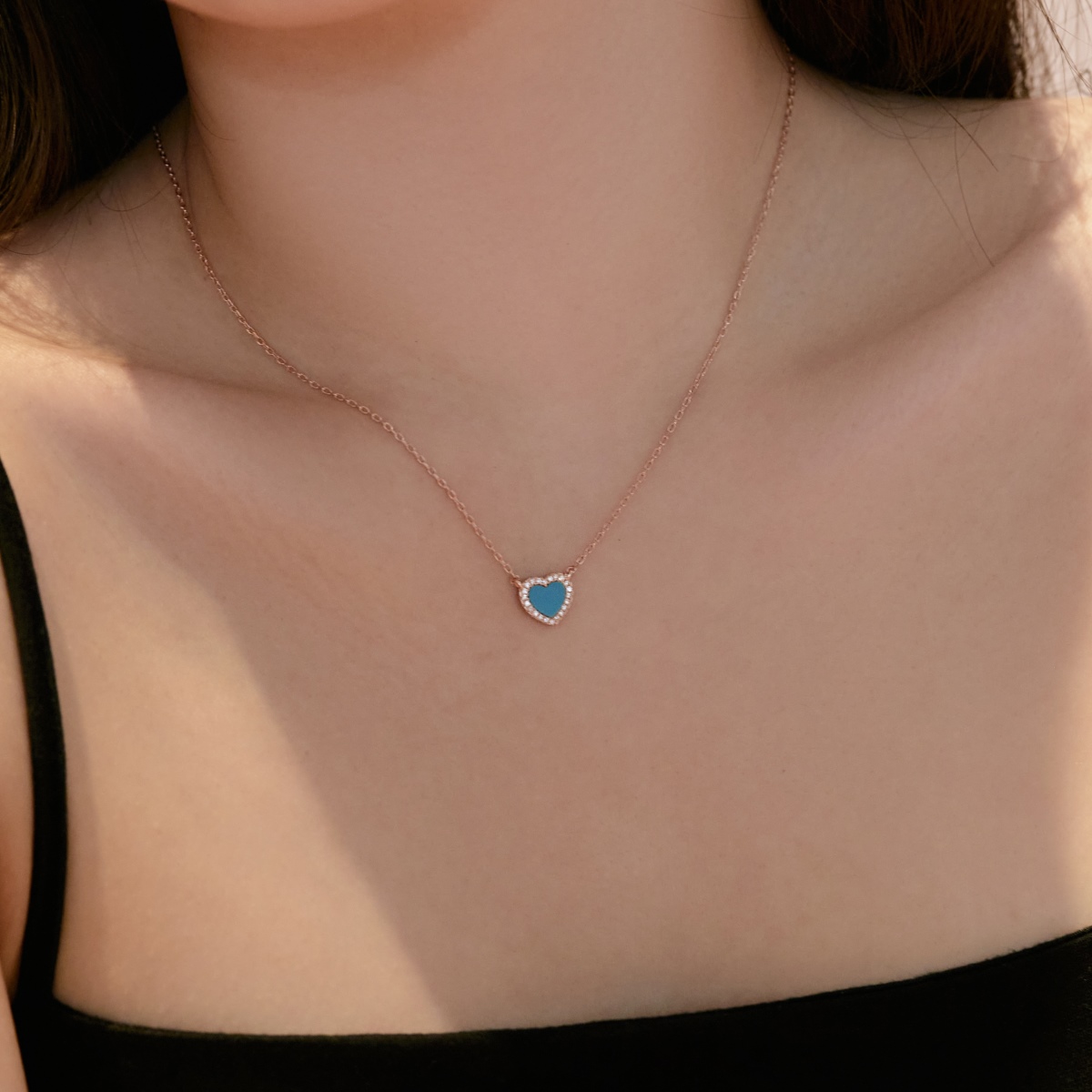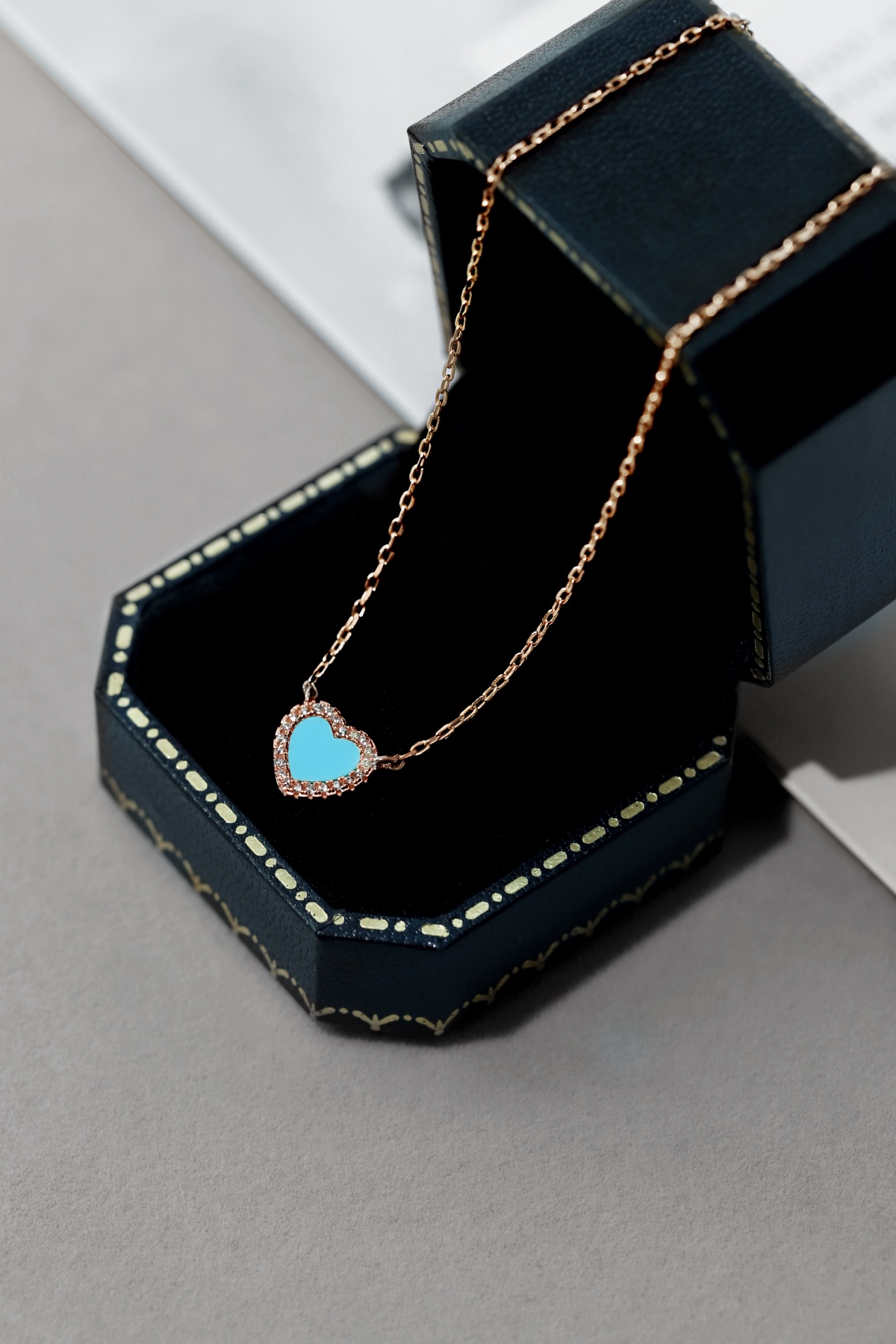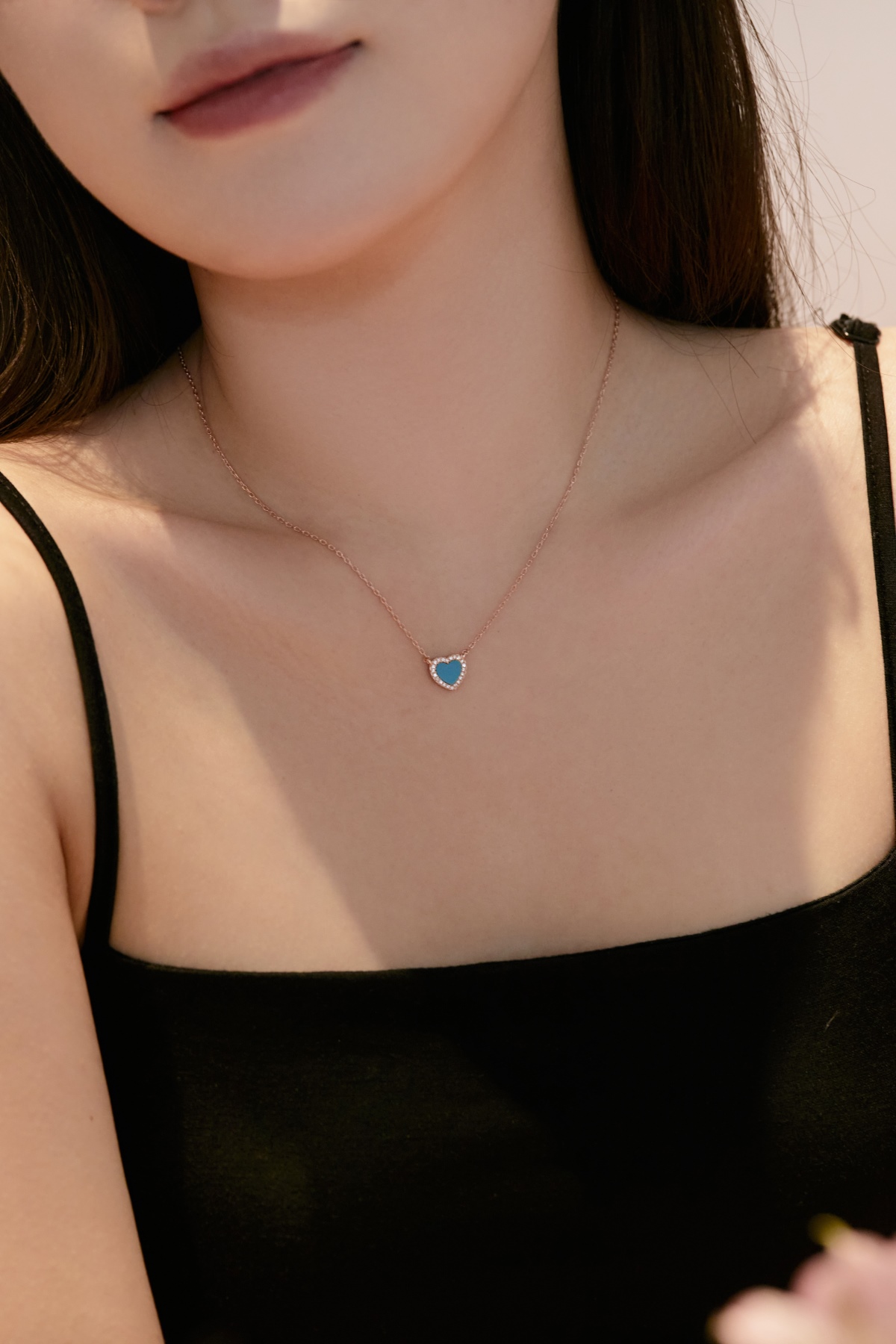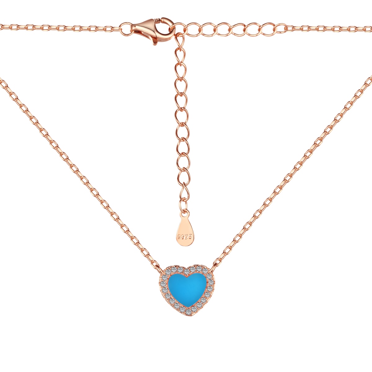 YK Beauty Blue Heart Rose Gold Necklace – 925 Silver